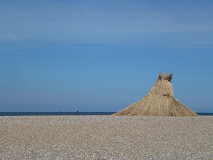 There is an art exhibition on the beach. This hut is one of the artefacts.