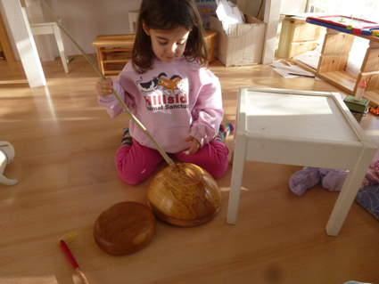 The children worked with wood in many different ways. Here is I.'s work.
