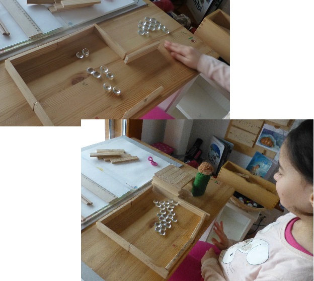 We finished our maths main lessons block last Friday. I. and S. discovered different stories and concepts of multiplication, division, addition and subtraction. Here are a few impressions.
